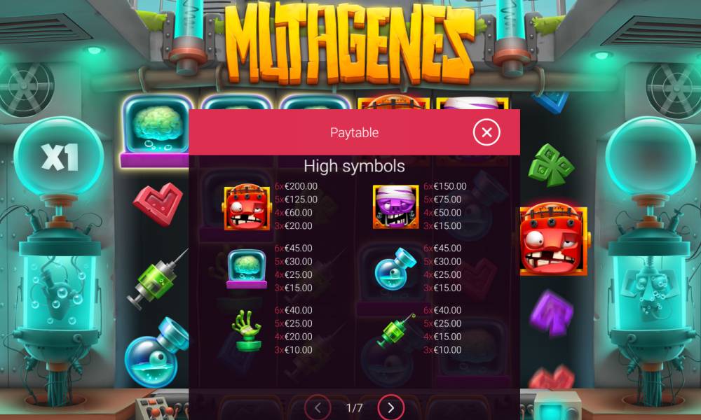 Free spins are also available in the Mutagenes, and the conditions for triggering them are as follows: