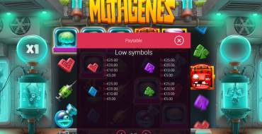The Mutagenes is a video slot with a 6x4 playing field. and 4,096 ways to win. Winning combinations are formed by matching identical symbols from left to right. The range of bets - from 10 to 5000 coins per spin. The game is also available cascading wins with increasing multiplier. The maximum winnings will be 12000x the bet.
