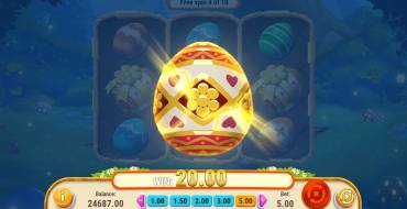 Mystery Egg Surprise has a minimal amount of bonus features, but that doesn't mean you should give up on the demo version of the slot. In the process of testing it will become clear whether the slot machine is of interest to the user at all. Yes, and the bonus system in free spins is worth it to familiarize yourself with it beforehand. Playing for free and without registration will also be able to compile a system of bets, which is justified for low volatility.