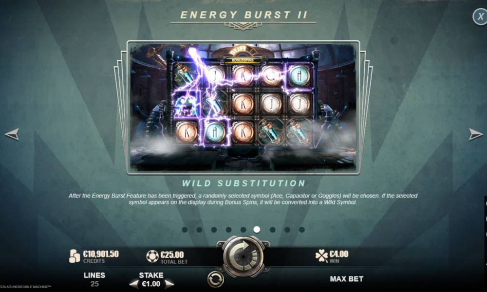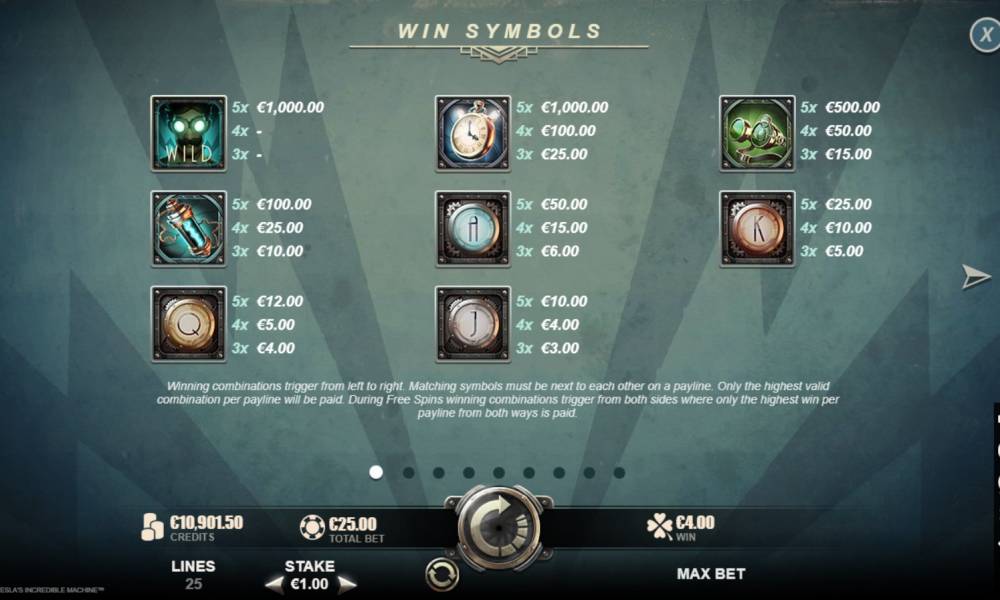 Please read about types of symbols, exceptions from the general rules, free spins and bonus options of the Nikola Tesla's Incredible Machine video slot below in the review.