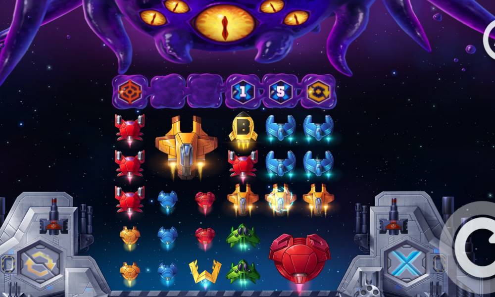 Free spins in Orbitfall are triggered when the Bonus symbol reaches the top row of the playing field. The user is awarded 5 free spins while retaining all the mechanics of the base game, increasing the chances of big wins.