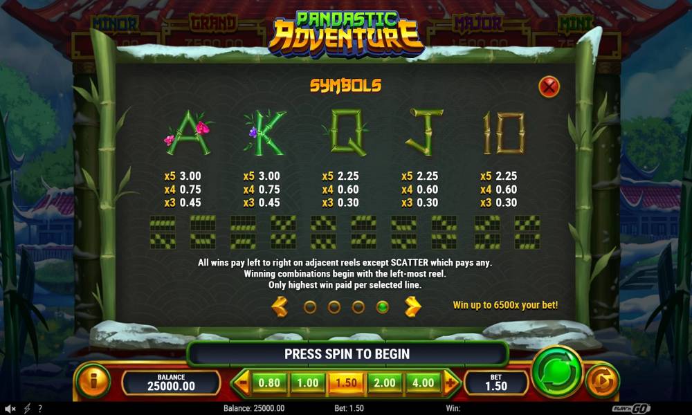 Pandastic Adventure features 4 jackpots with fixed multipliers: