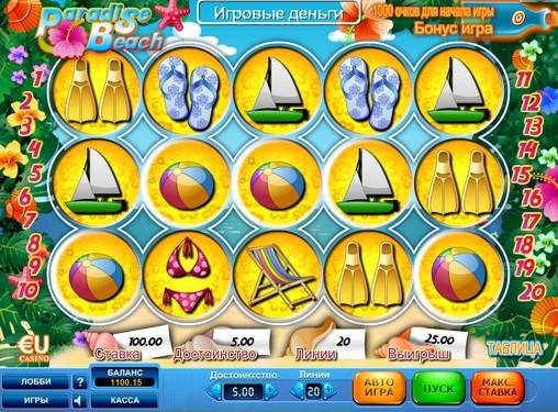 You can find Paradise Beach slot machine in EU Casino and some other online casinos, powered by the software developed by SkillOnNet company. The readers of Casinoz also have a chance to test it in a training mode even without registration.