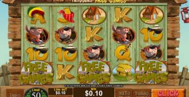 Piggies and the Wolf is a five-reel video slot with four rows of pictures on the screen. The slot machine can only be played on fifty active lines. In EuroGrand Casino, where we tested this model, the line bet can be from one cent to fifty dollars (0.01, 0.05, 0.10, 0.25, 0.50, 1, 2.50, 5, 10, 25 or 50). On the spin is accepted up to two and a half thousand dollars.