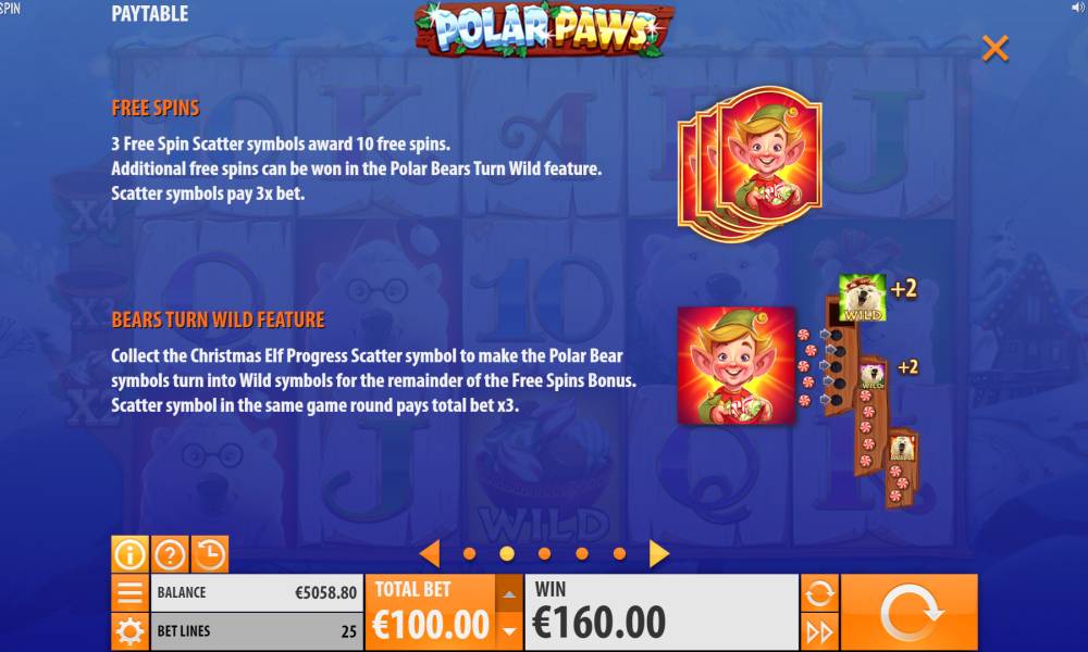 The Polar Paws video slot doesn't offer to win a progressive jackpot from Quickspin.