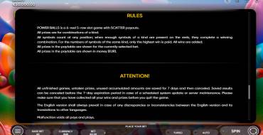 Playing the Power Balls requires no special knowledge or specific skills. The interface is simple and clear, all buttons are signed, and actions on the screen are accompanied by text explanations. Before starting a game round you need to: