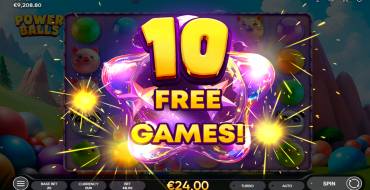 The feature of free spins in the slot machine Power Balls is realized in the form of a bonus game. Its characteristics are described in the section Bonus Games.