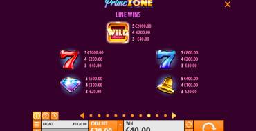User's settings allow to set limits for the autoplay, adjust the sound, speed of the gameplay and other parameters. There is no need to download the Prime Zone video slot.