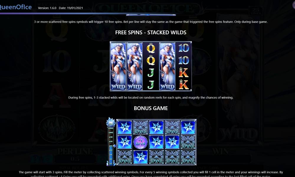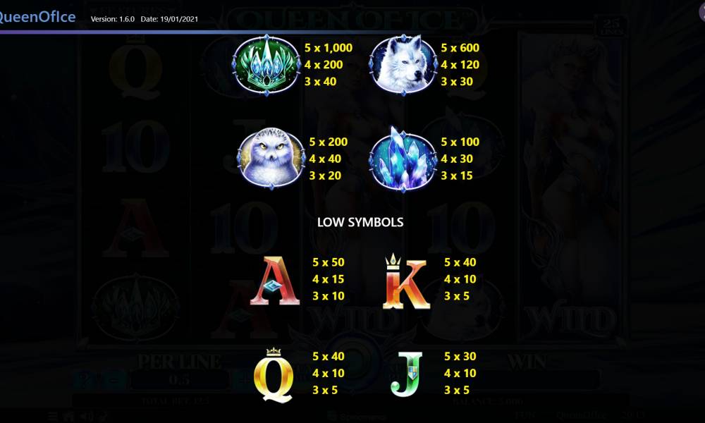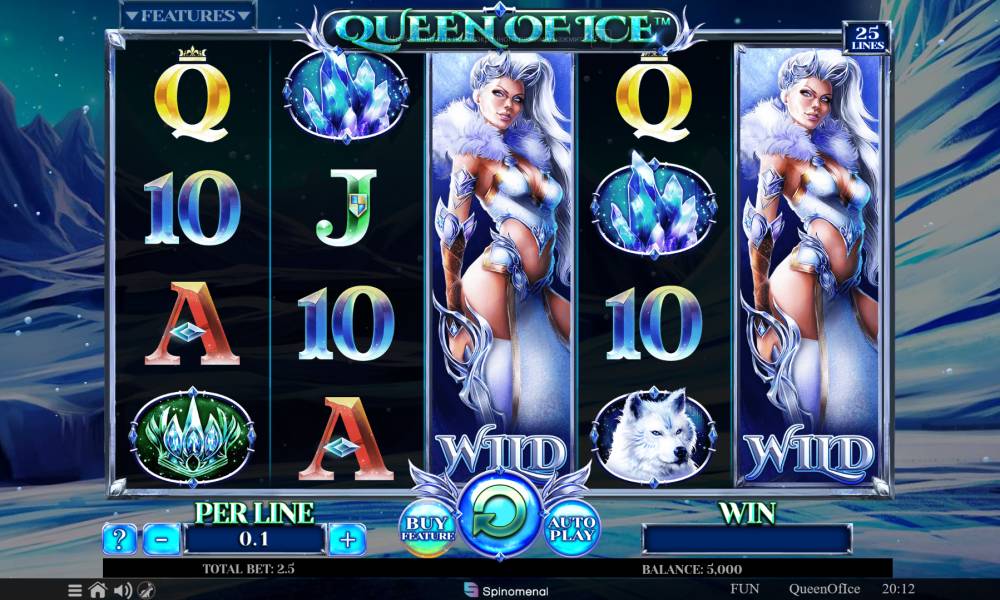 The playing field of the Queen of Ice slot from the provider Spinomenal has a 5x4 view with 25 paylines.