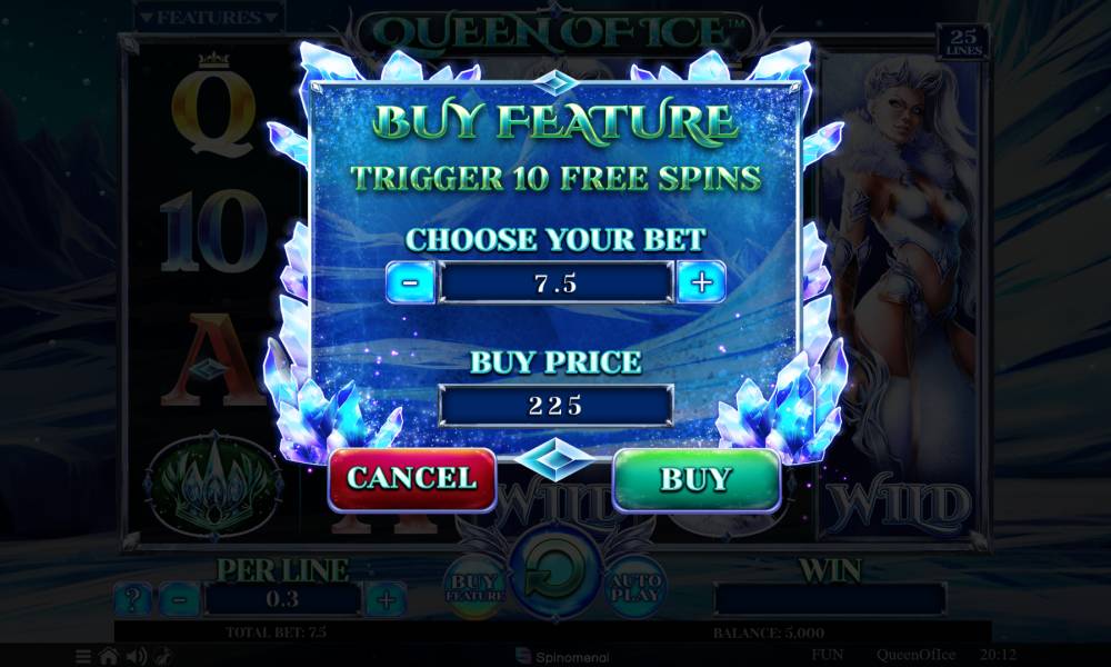 The Queen of Ice slot machine from the provider Spinomenal is all about the queen of ice. In addition to the classic freespins, there's also a special bonus game that can bring a huge payout, up to 50,000 bets. If you don't want to wait, you can activate the bonus feature for an additional fee.