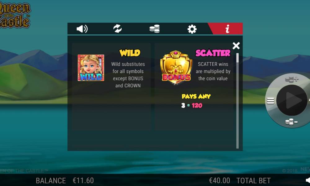 A charming princess-doll is living in the toy castle of «Queen of the Castle» video slot. She is hiding in a high castle, but shows out to the light time after time, generously gifting the players with bonus options. The model, developed by NextGen Gaming company, attracts by an interesting design, numerous payoffs and attractive prize features.