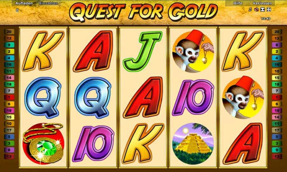 Frankly speaking, Quest for Gold is far not the best online slot machine, developed by Novomatic. First of all, it misses some unique particularity, which could point it out at the background of other video slots by this producer. The range of gaming functions is almost classic, the payment indexes are not high, a thematic bonus game is not provided here. The gambling feature is unclear. On the other hand, there are no serious disadvantages here as well.