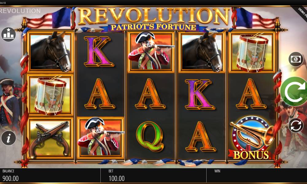 You are welcome to test Revolution Patriot’s Fortune free at Casinoz.club. Look out for a button at the top of the page to open the demo version.