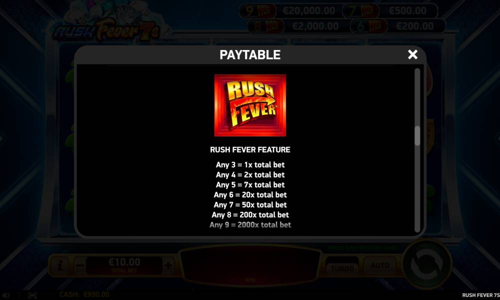 Wild is a substitute symbol that can be used to form any combination, including several at once. The role of Rish Fever and Scatter symbols will be discussed in detail below.