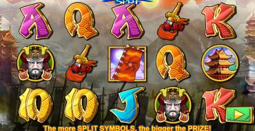 «Samurai Split» video slot has five spinning reels at the screen with three symbols at each of them. There are twenty five active lines here. They are always active on default. An amount of the bet is forty coins valued from one cent to two dollars and a half (from forty cents to one hundred dollars per spin). «Samurai Split» online slot machine is provided with basic symbols, Wilds, Scatters, Split Symbol and Warrior Spin features, as well as prize spins with advanced options. The ordinary symbols make winning combinations of three (two is enough for some elements) and more same icons. All combinations must be formed at active lines, starting from the first left reel. Payoffs are calculated by coin value and an index of formed combination. These two values are multiplied by each other. Payoff multipliers vary from x2 to x500 in «Samurai Split». In case of numerous wins in result of a round, all charged credits are summarised. «Samurai Split» has no gambling features. Please read about exceptions from the general rules and special bonuses below in the review by Casinoz.club.