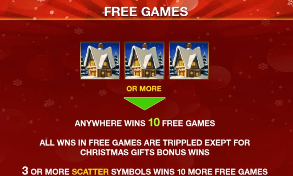The letters in the wooden style with Christmas candles, scarves, garlands of fir branches and hats of Santa Claus have been painted on the reels. In addition, the traditional stocking is available. The role of the wild symbol traditionally belongs to the image of Santa Claus. It is able to replace any other symbol, except for the scatter and bonus symbols. If several wild symbols appear in one line, the gamer receives an additional payout. Five images of Santa Claus allow becoming the owner of the maximum jackpot. The Santa's cottage serves as a scatter. When at least two scatters appear on the screen, this means an increase in payouts for the player. The more of them appear on the screen, the higher will be the multiplier. If three or more cottages show up, ten free spins are activated, during which payouts are tripled. The bet size during the free spins is similar to bets of the previous round. If over three scatter symbols appear again during these spins, it will add extra bonus spins. There is also an image of the Christmas tree with the word Bonus. If three or more such symbols form a sequence in the payline, it will activate an additional round on the second screen. Users will find themselves in the room with the decorated Christmas tree and they will have to choose one of the gifts.