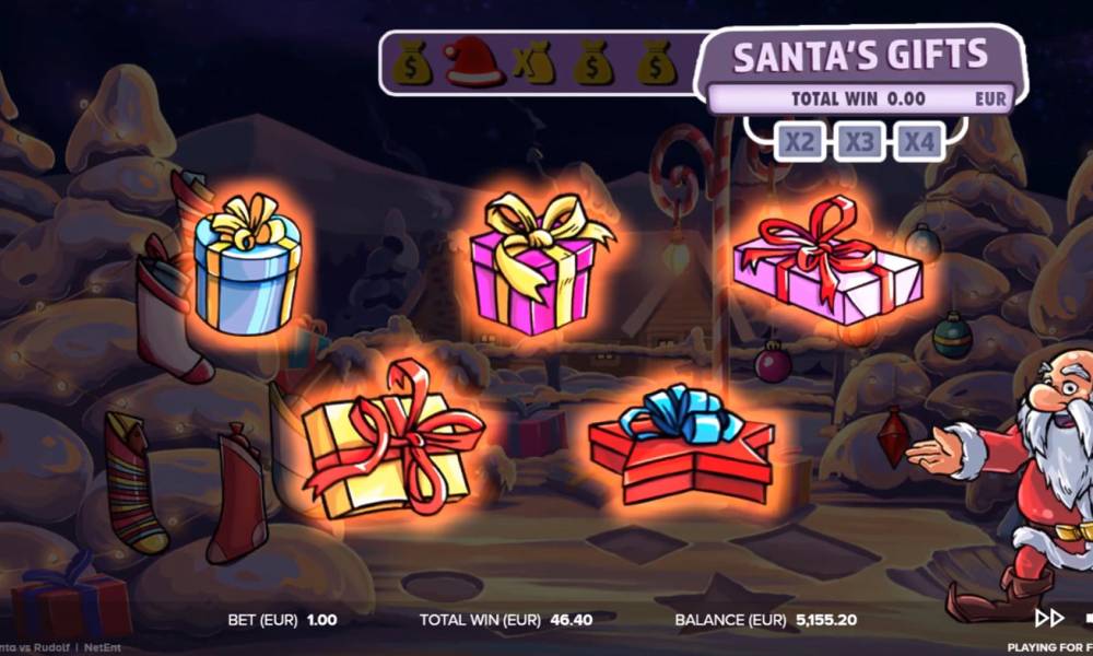 • Santa's Gifts – you will open the gifts randomly. They may hide extra multipliers, increasing multipliers or Santa's hat, which takes the game to the next level. Higher levels bring more valuable prizes. For example, up to 4x the total win.