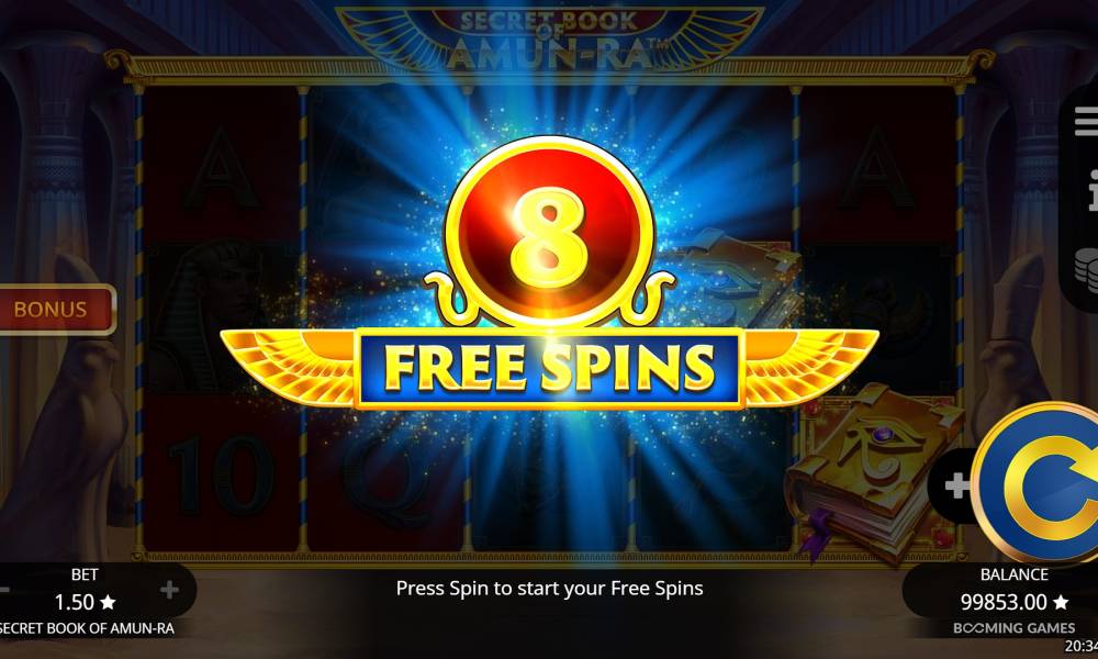 The Secret Book of Amun-Ra has only 1 set of free spins which includes 8 spins. It can be triggered in 2 ways: