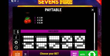 The Sevens Fire slot machine from the Gamomat provider has a standard 5x3 playing field. All payouts are made on 10 pay lines.