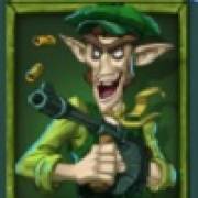 The set of main thematic symbols in the slot is very unusual. The low-paying symbols include a Molotov cocktail, green hat, bat, horseshoe, knives and brass knuckles. The most valuable are orange, purple, green and blue leprechauns.