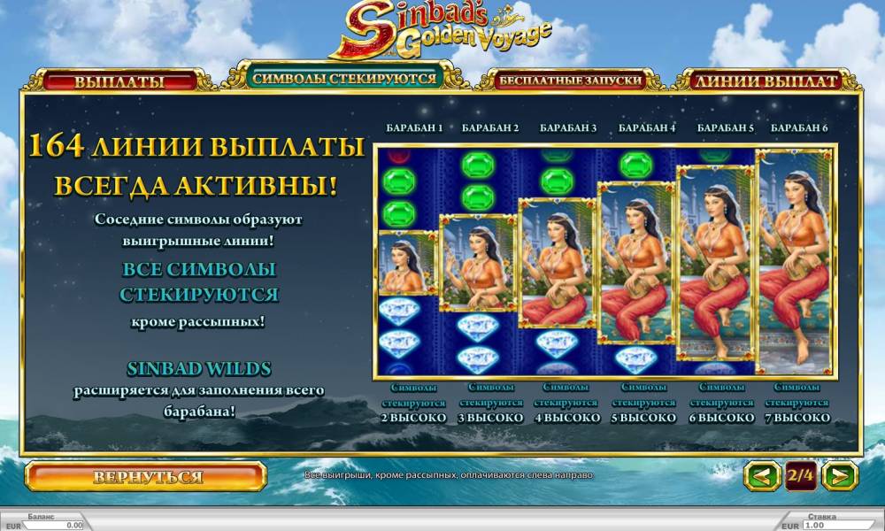 The Sinbad's Golden Voyage slot machine is characterized by an average theoretical return and high volatility. Only the player can decide whether to try one of the popular gaming strategies.