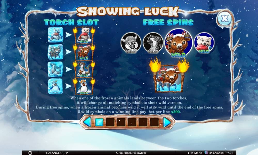 Online gambling guide Casinoz.club keeps introducing production of Spinomenal company to the readers. Here comes a colorful and exciting online video slot named «Snowing Luck». It is devoted to the original peoples and animals of the Far North. Terms and conditions of this model are carefully explained in the following article.