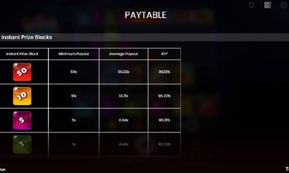 You can win up to 5,000x your bet. The 5,000x Max Block top prize has a very good odds of 1 in 5,205 spins