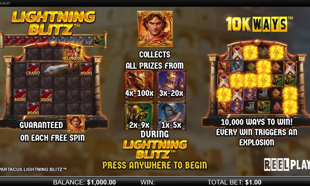 The new Spartacus Lightning Blitz slot from ReelPlay offers a bloody and brutal gladiatorial experience. Brave warriors take to the arena for the amusement of the public to fight their way to freedom and glory.