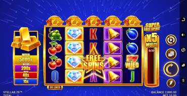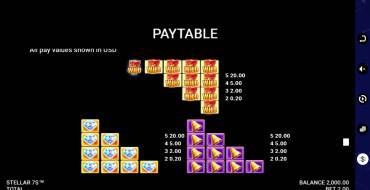 Just for the Win has added a free play option to the slot to try it out before depositing. In the demo version of Stellar 7s, the player gets 2000 bonus points that can be spent on bets. This way you can learn all the combinations and understand the mechanics of the bonuses before making a deposit.
