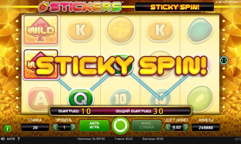 ☺ The maximum winnings are 80,000 coins.🤑 The wild symbol in the game is responsible for a special option, triggering the Sticky Spin feature. The spins will continue as long as the wild symbols fall on the playing field.