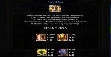 The number of free spins in the Story Of Zeus depends on the number of Scatter symbols that fall out. 3 symbols give you 10 attempts, 4 - 25, and 5 symbols - 50 freespins! During the bonus, the Respin Expanding Wilds feature is activated. All wins take into account the size of the bet that was standing at the time of the trigger. If you also take into account the number of respins, the bonus is extremely attractive.