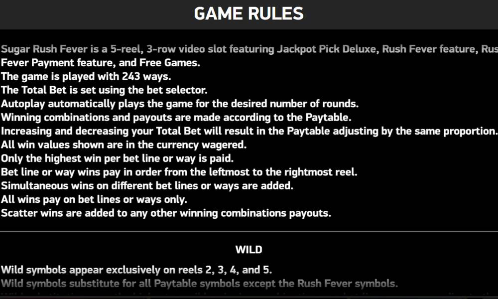 We have placed the Sugar Rush Fever demo at the top of the page so you can learn the rules first hand. Play the demo for free and without registration. All the features of the slot work without restrictions.