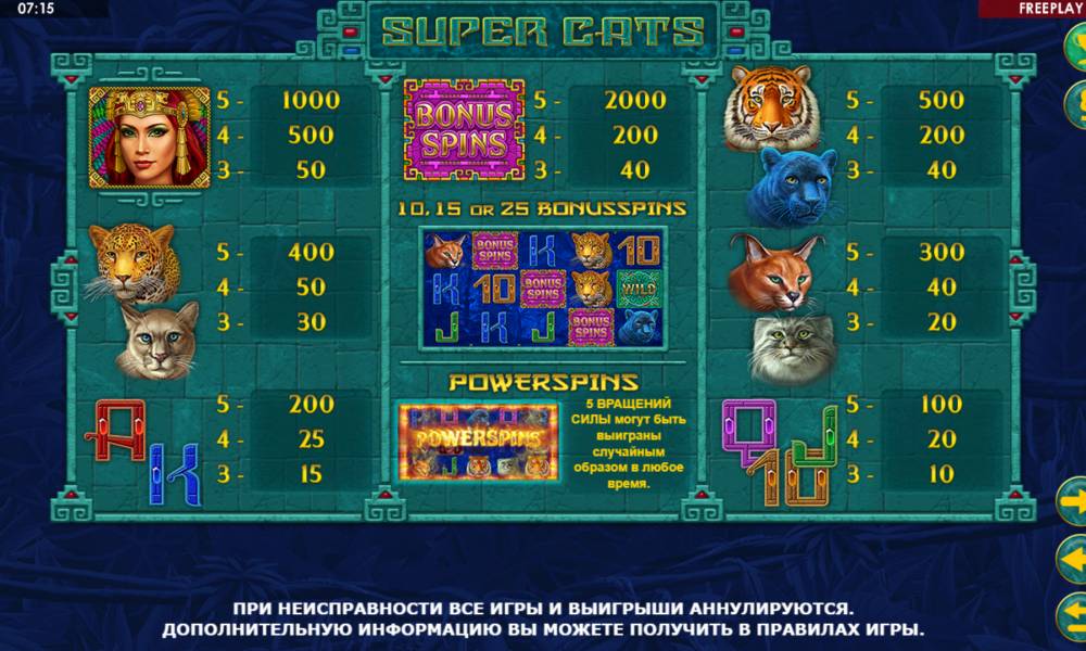 The Super Cats slot machine from the provider Amatic Industies is all about wild predatory cats. If you're lucky, you can win up to 1000 bets in this slot. The game has not only free spins, but also a special feature that makes the gameplay even more exciting.