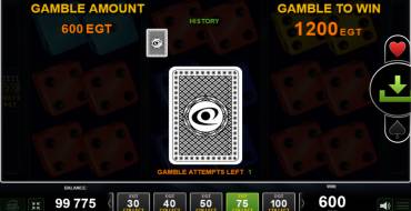 Gamble. This is a risk game to double the winnings earned in the base round. You can get it by guessing the color of the card - red or black. If the user makes a mistake, he will lose the bet and return to the reels. If he guesses, he can take the money back or risk it again to double it.