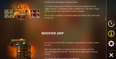 Boosted xRIP. For 50% extra to the bet, the user gets a Scatter symbol on reel 1.