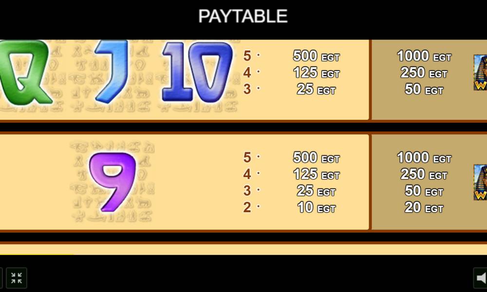 Wild symbol - can substitute for all symbols, except for the image of pyramids. It pays from 2 to 5 pieces on the line. When included in the combination of other symbols, it brings x2 to their payment for the chain.