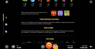 | Bonus games | Free Spins, Bonus Game, Respins, Wild Reel, Risk game |