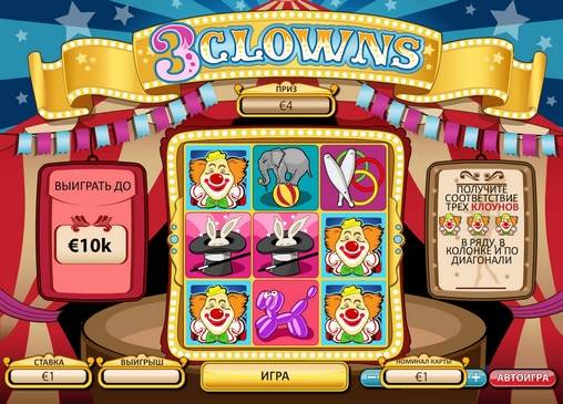 The virtual Three Clowns Scratch is devoted to clowns. If you're a gambler and like the circus, you should try your luck in a game that does not require any special knowledge from you.