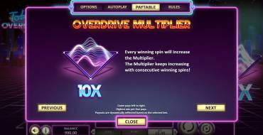 Total Overdrive is quite a high-volatile game. The RTP is average.