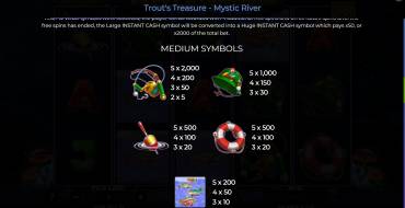 The online slot Trout's Treasure - Mystic River from provider Spinomenal offers users to try their hand at fishing. Fresh air, pristine nature and a great catch guarantee a good mood. Well, if the hook will be not a fish but a treasure, it will be even more interesting!