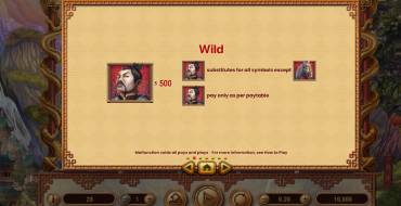 Wild symbol is an oriental warrior. Replaces any symbols except Bonus. Pays for a simultaneous fall of 5 pieces.