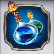 You will land 10 regular symbols: a genie lamp, a chest of treasures, an ancient book, bottles of liquid, a round pendant, 4 card suits and a violet circle. All of them can be single or stacked depending on the situation. Same symbols may land on all 15 positions on the screen.