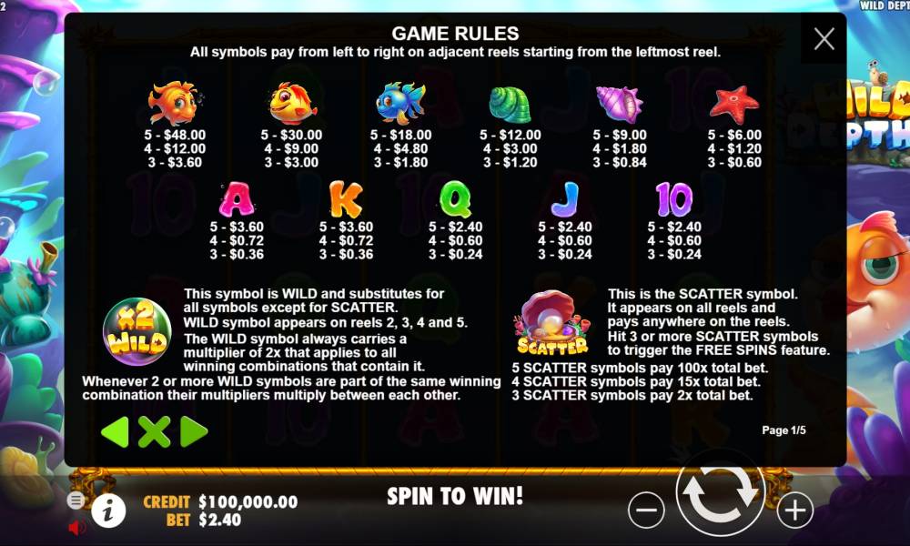 The Wild Depths slot machine from the Pragmatic Play provider is dedicated to maritime themes. If you are lucky, you can win large prizes, up to 5,000 bets.