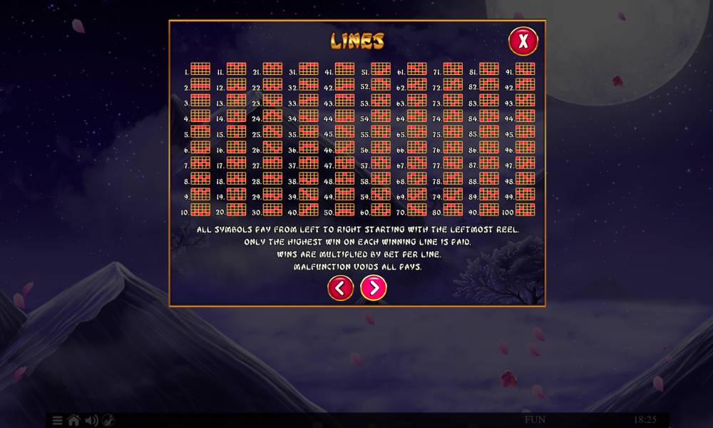 To receive a payout you need to catch a line of identical symbols, which goes sequentially, starting from the first reel. It is also possible to multiple winning combinations.