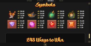 The online slot offers 5 reels in 3 rows and 243 fixed paylines.