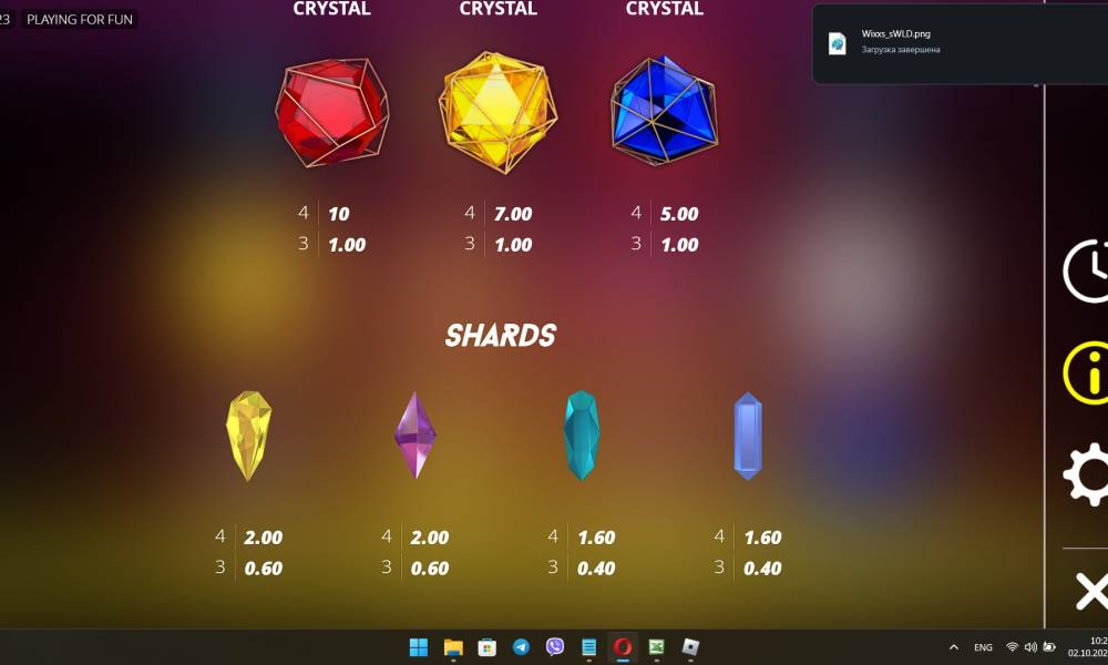 To each color of crystals are tied their bonus features, such as the Wild Ruby Booster symbol, Multiplier Topaz Booster and Sapphire Booster. The minimum bet is €0.10 and the maximum bet is €100.