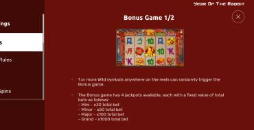 When playing Year of the Rabbit, it's important to remember, that there is no 100% guaranteed winning strategy. Gambling, including including slots, are always based on chance, and the outcome of each spin of the reels is unpredictable. This means that the winnings depend on luck and not on any algorithm. It is important to realize that no strategy guarantees winnings, and each spin is independent of the previous one. Play wisely and remember that winnings will always depend on luck.